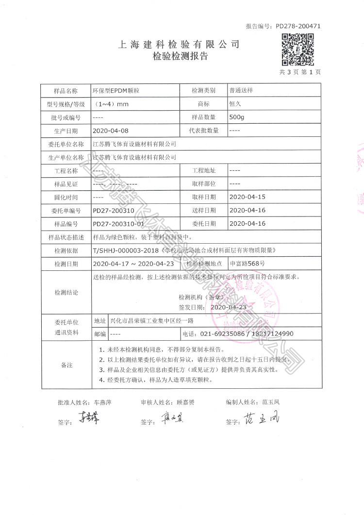 EPDM顆粒檢驗報告